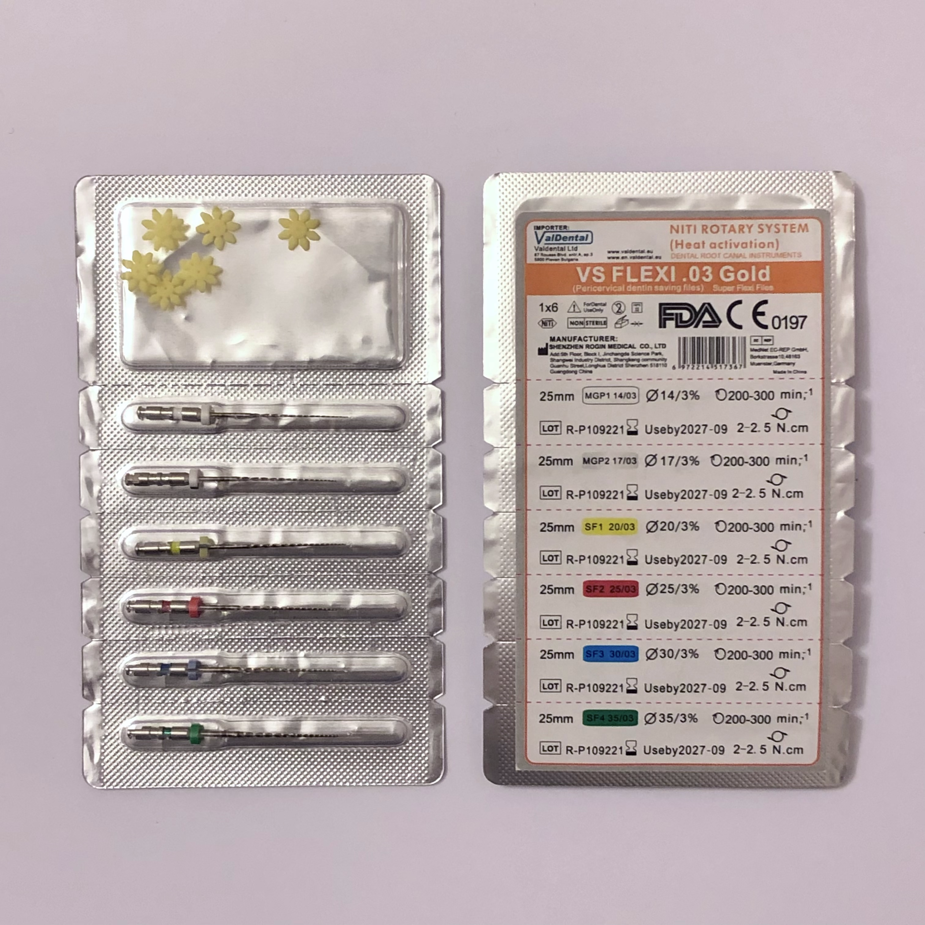 VS Flexi .03 Gold kontrollált memóriájú Ni-Ti endotűk a DPS-hez képest alacsonyabb, 3%-os konicitásúak, melynek köszönhetően még jobban megőrizhető a pericervicalis dentin. A VS Flexi VT Blue-val "hibrid tágítási protokollban" alkalmazva tökéletes társ a minimálinvazív endodonciai beavatkozásokhoz.