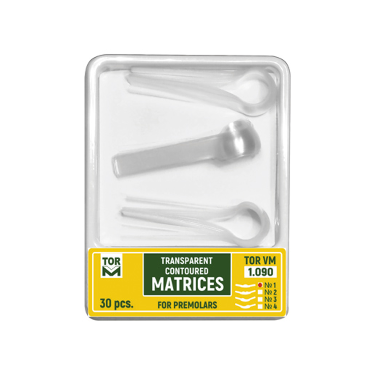 Utántöltő No.3 30 darabos kiszerelésben, premoláris fogakhoz. A matricák rendelkeznek a szekcionált matricák domborúságával és a körkörös matricák jó rögzíthetőségével. A matricák átlátszóak így jól átpolimerizálhatók a tömőanyagok.