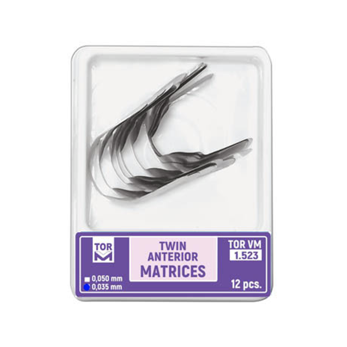 Körkörös, domborított fémmatrica approximális, nyaki frontfog felszínekhez, 12 darabos kiszerelésben. A körkörös domborított matricák a szekcionált matricák előnyeit kiegészítik a körkörös matricák kiváló rögzíthetőségével. A TOR matricák rugalmas anyaga kiemelkedő kontaktpont formázást tesz lehetővé.