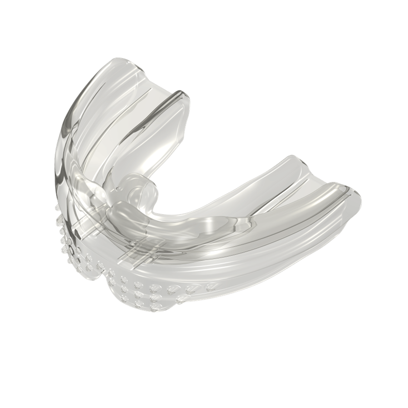 Rögzített fogszabályozó készülékhez használandó myofunkcionális készülék. Két méretben, egy színben kapható. Első fázis. Magasabb oldalak, kiterjesztett ajakütközők és szélesebb csatorna a bracketek számára.